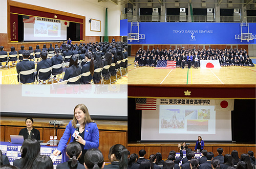 アメリカ合衆国独立250周年を記念し、在日アメリカ大使館が実施する「America250 スクール・スピーカー・プログラム」の一環として、アメリカ大使館から外交官が来校され、本校国際教養コースの1〜3年生向けに特別講義を行なっていただきました。
